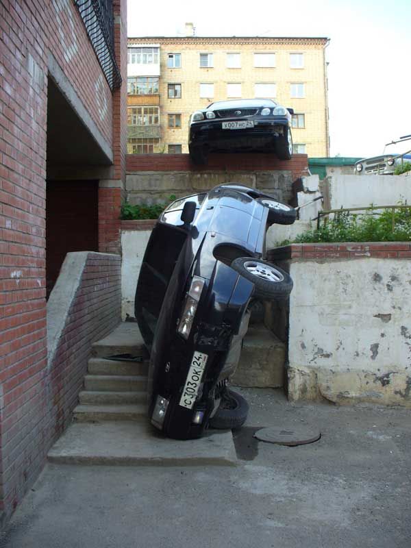 девко ехало на тайоте(та что сверху) одним колесом попала в колодец, вдавила газ и ударила десятку, которая стояла на нейтралке:)